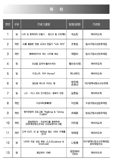 2025년 대구광역시 청소년활동 프로그램 경진대회 자료집Y