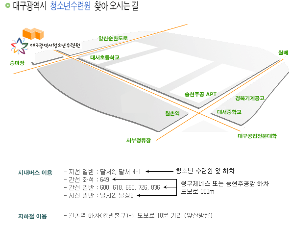 (41934)대구광역시 중구 중앙대로 81길 66-5 (종로1가 83-1) 1층 대구광역시청소년활동진흥센터 Tel. 053)659-6210 Fax. 053)659-6219 E-Mail. dgyouthcenter@hanmail.net Copyright (c) 2008 DAEGU YOUTH SERVICE CENTER ALL rights reserved